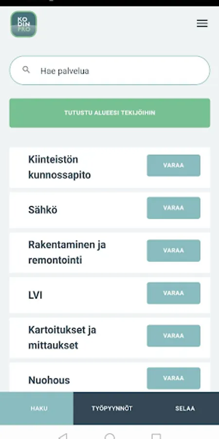 KodinPro® is an online and mobile service that allows consumers to subscribe to a variety of services such as plumbing, electrical, construction, renovation, sweeping, cleaning, or yard work for their home and vacation home. The Services are provided by companies registered with KodinPro®. See the help you need!