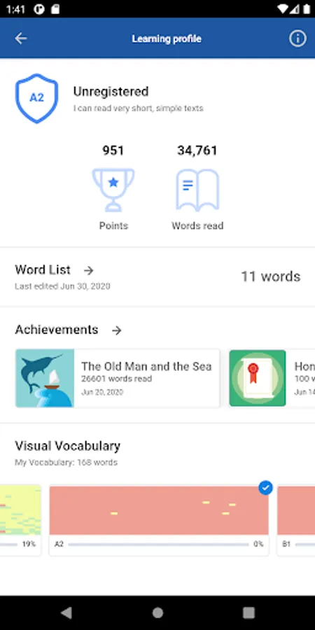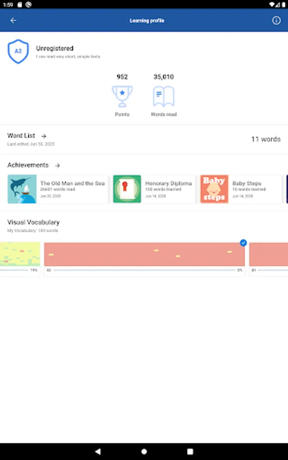 - Explore your vocabulary in a visual overview and follow the progress of your own Learning profile