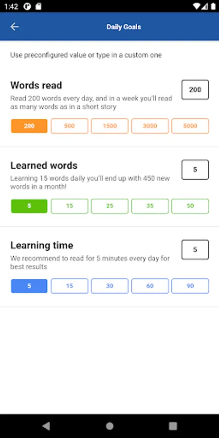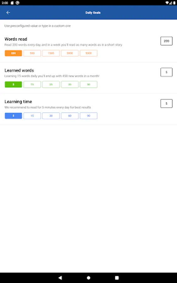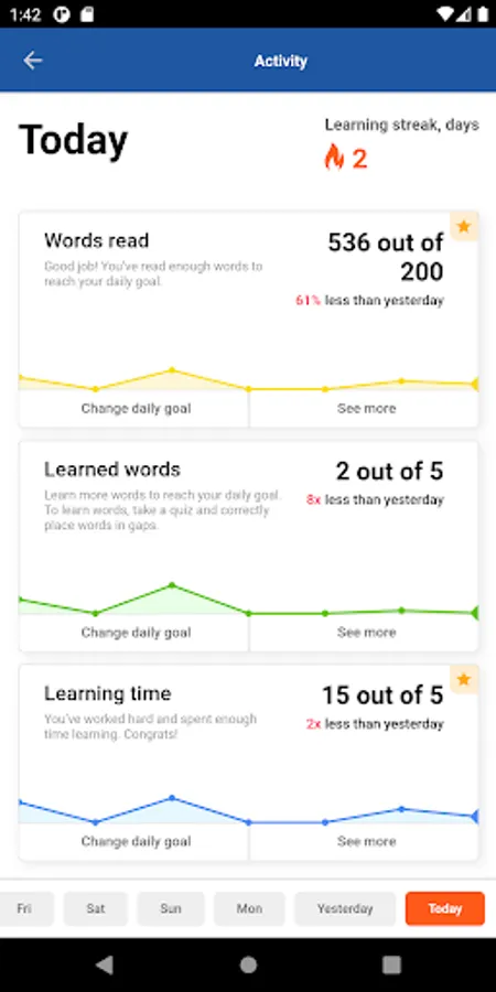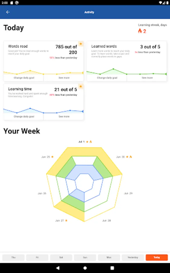 - Gamification: monitor your activity with graphs and set personal learning goals