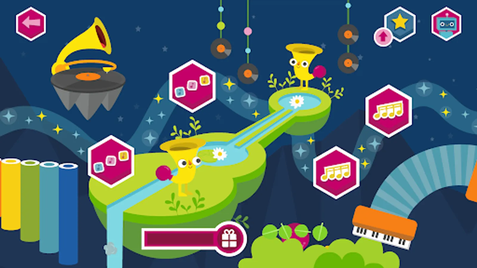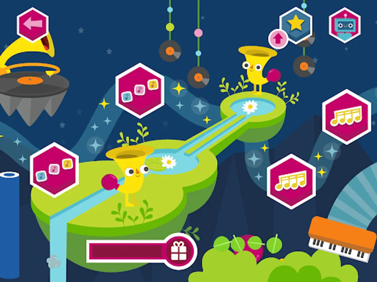 In the music content, created by Big Ear Games, the child can explore musical scales, rhythms, melodies and harmonies through familiar songs. Creativity can also be expressed with the included sequencer, allowing the child to create their own music.