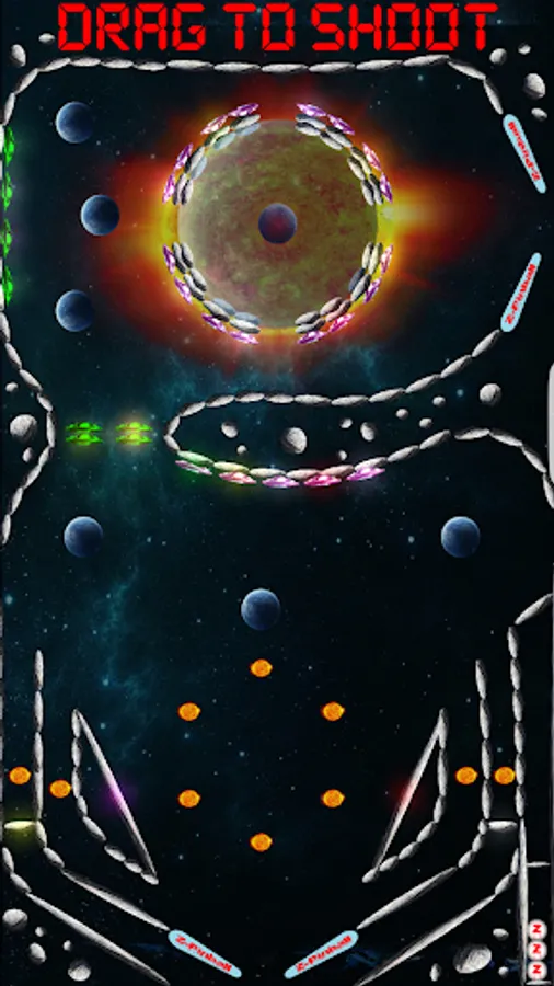 In Gravity table direction of ball changes in upper part. Find out teleports that lead to upper layer or destroy blocking UFO's to get there! Rolling planet in middle of the upper screen is your main target!