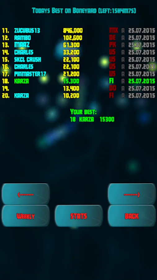 Post your scores and try to be in the top 10 weekly list. Also check your current global all time position from highscores. Beating your own best score on table will be indicated!