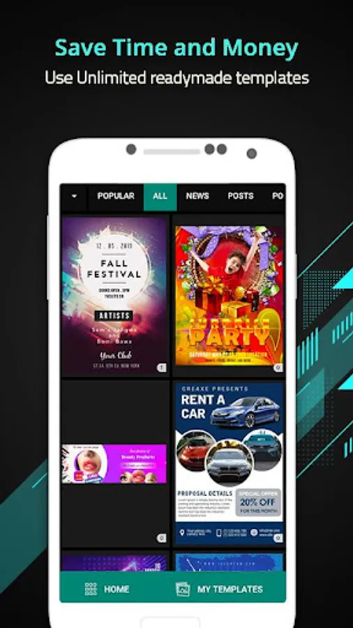 Explore the convenience of ready-made social media templates, allowing you to design beautiful posts with just a few taps. With DesignX, you can effortlessly create captivating content for platforms like Instagram, Facebook, TikTok, YouTube, Twitter, Snapchat, LinkedIn, Tumblr, and Pinterest.
