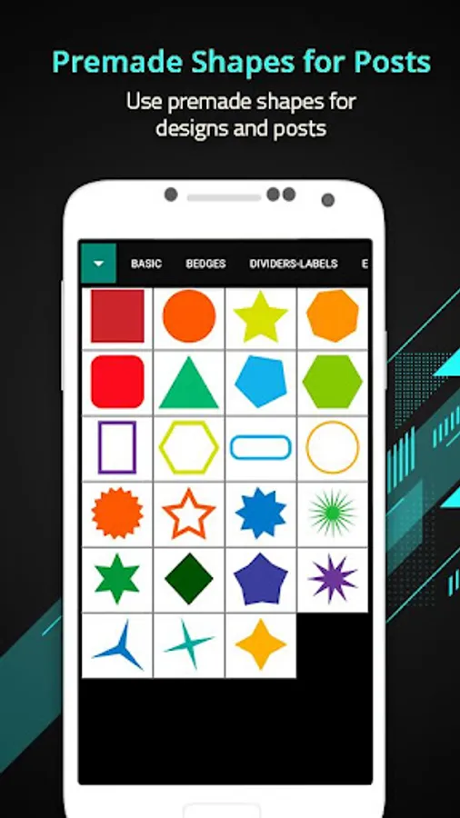 • Shapes/SVG Import: Import your own SVG, customize shape colours, apply gradient or pattern fills, export as SVG/PNG, skew, add borders, and more.
