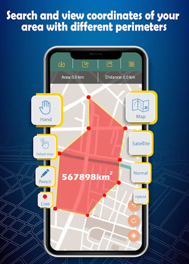 Calculate area and measure field by area gps finder map app. Real-time tracking and calculating all above functionality between points by gps area calculate app. Calculate area all kinds of shapes fast and reliable with the help of gps area measurement.