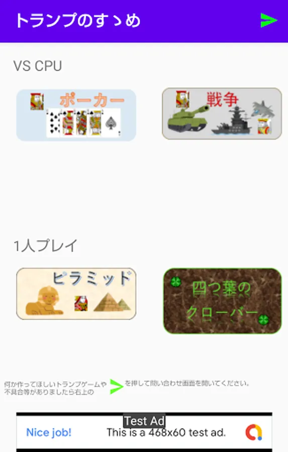 Currently, there are only about 4 types, but we are looking for card games that we would like you to make from the send button at the top right of the main screen. I think it's still a mess, but by all means! We appreciate your opinions.
