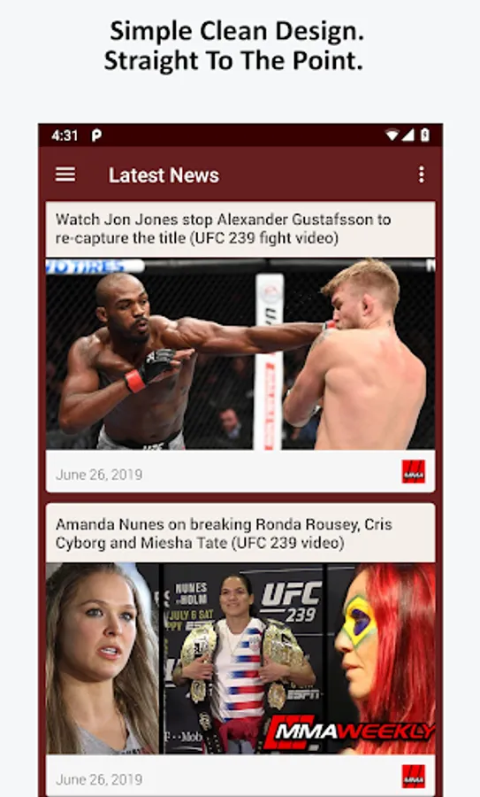 Simple and easy to use, FightCreed is the most solid and robust Mixed Martial Arts app available to fans using Android phones and tablets.