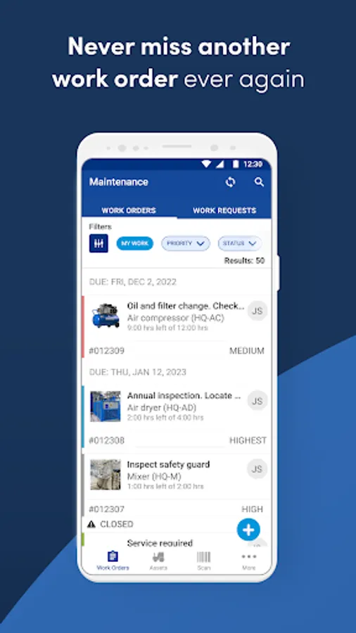 - Work order management: Easily create and assign work orders for maintenance tasks, and track their progress from start to finish.