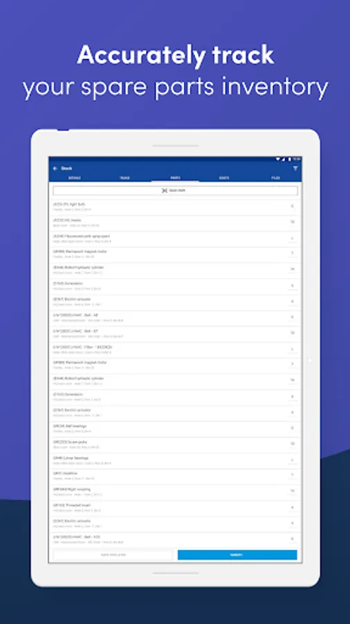 - Spare parts inventory tracking: Keep track of spare parts inventory and quickly associate needed spare parts with a work order.