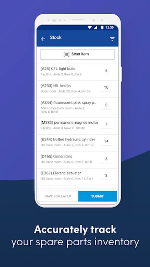 - Barcode scanning: Scan barcodes on assets and parts to quickly find and access a specific item in the CMMS, without having to manually search for it.
