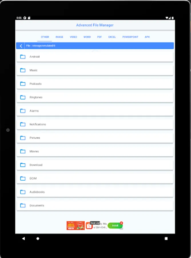 This app supports all file formats (word, excel, power point,..) Advanced File Manager supports media files and popular file formats including apk.