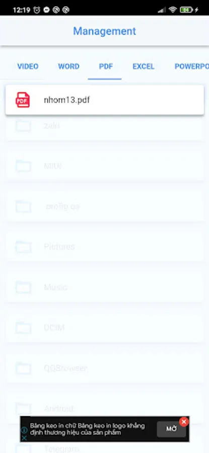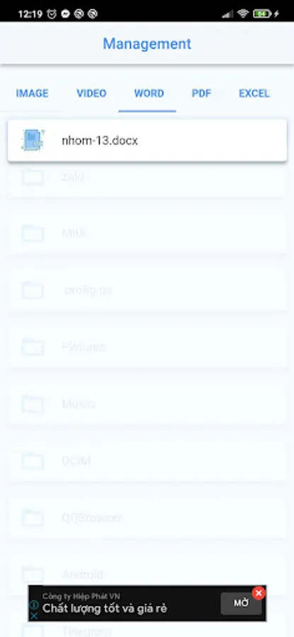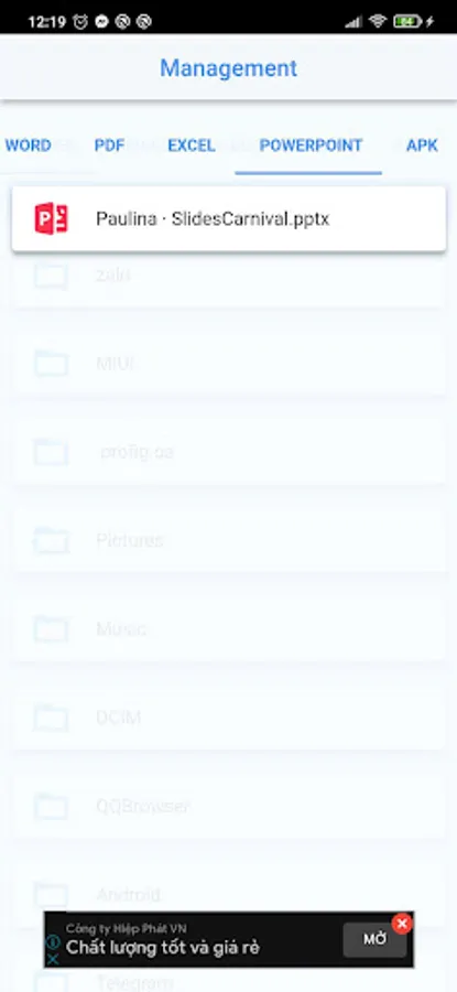 • Documents: The application can manage all document files in the device (including doc, ppt, pdf, ...)