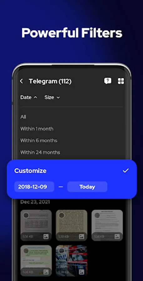 β Powerful filters - filter files by date, size, and folder to quickly find your target