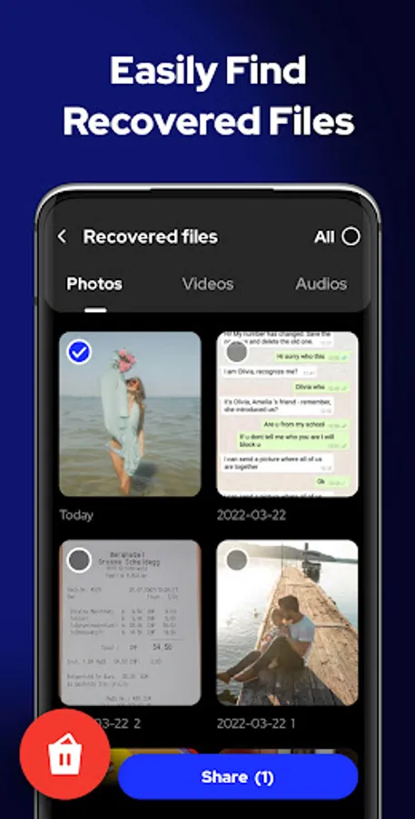 β Undelete & recover deleted photos, videos, and audios with one click