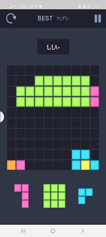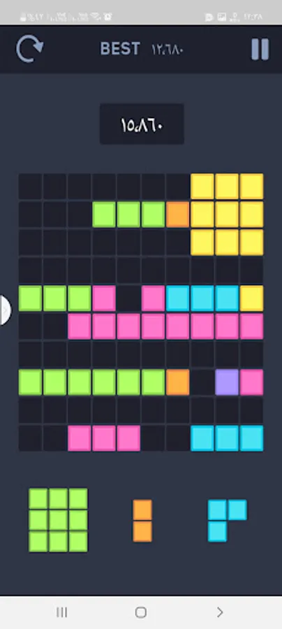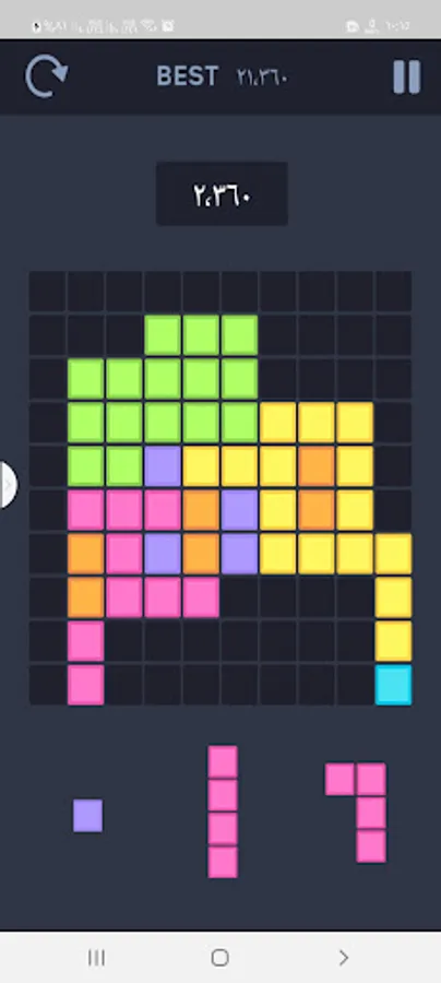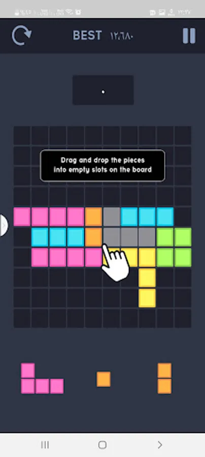 Put the pieces on the board. Once you fill in a vertical or horizontal line, it will disappear, making room for new pieces. The game will end when there is no space for new pieces.
