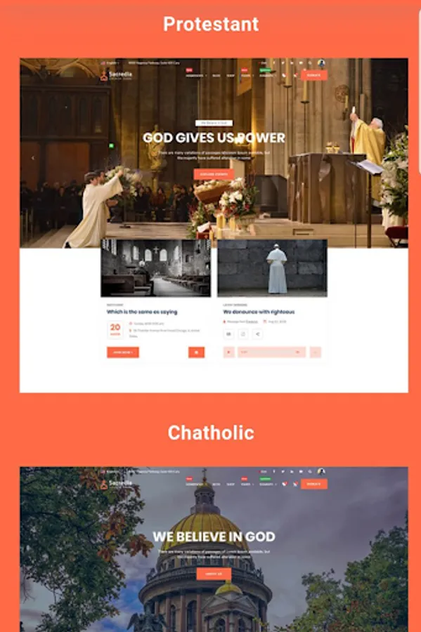 Sacredia Church & Non Profit Wordpress theme Possibilities Include