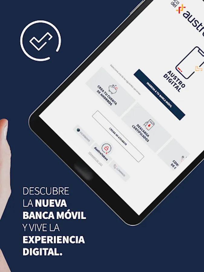 Enter your new AustroDigital Mobile Banking from the comfort of your cell phone and tablet! Thanks to our App, you will have a transparent, intuitive and safe experience. Available 24 hours a day, 7 days a week.
