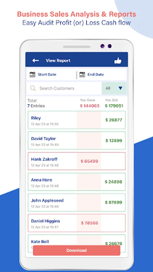 • Business Cash Flow Sales Analysis & Reports: Analyze your cash flow, sales, profit, and loss easily.