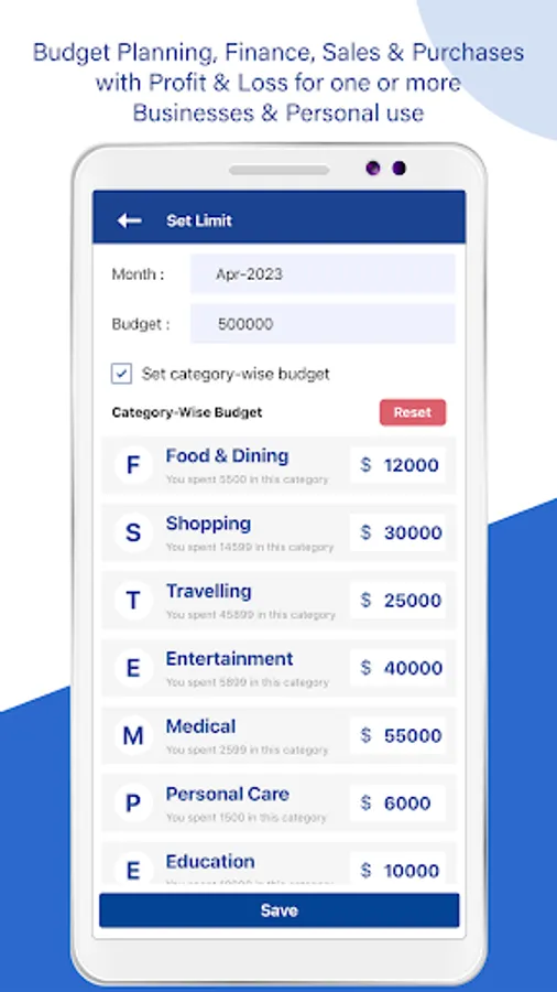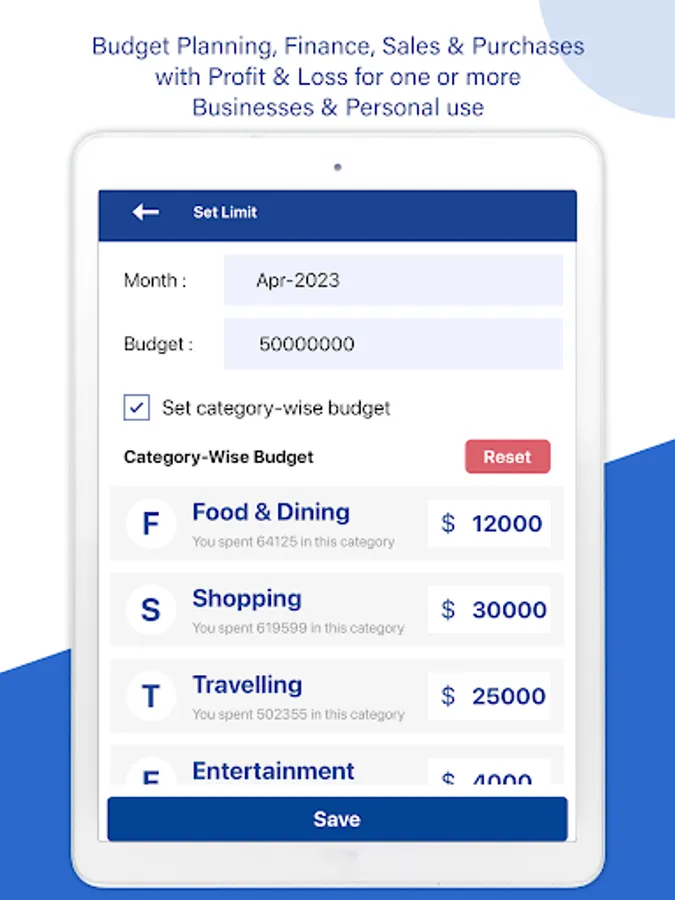 • Budget Tracker with Set-Limit: Set a budget limit for your monthly spending and track where you are spending more money.