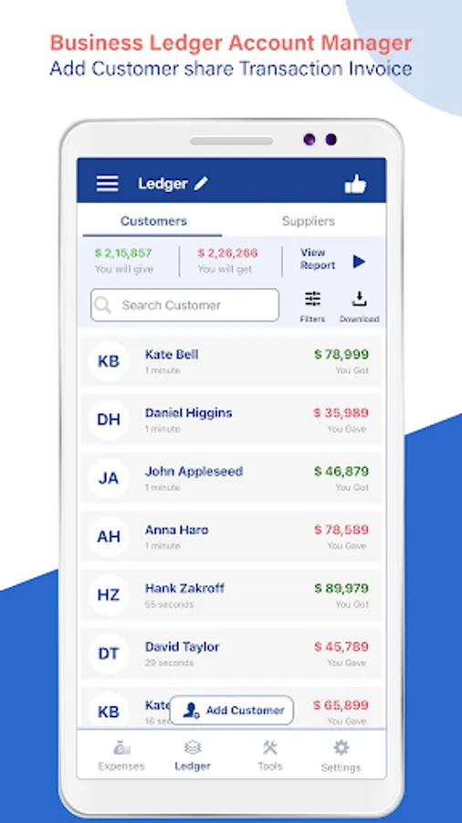 Ledger Book Manager is the best budgeting app for managing your personal and business finances. With this app, you can easily track your income and expenses, and create a budget that works for you. It is the ultimate Budget Planner solution that provides you with a ledger book, cashbook, and khatabook all in one place.