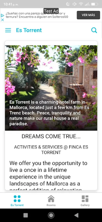 Application of the agritourism Finca Es Torrent with gallery and catalog of the agritourism offers.