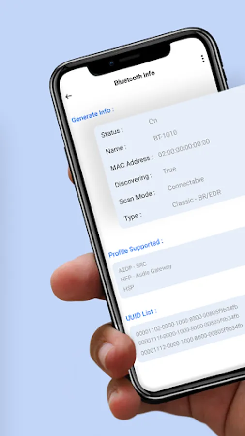 - Display details about device Bluetooth .(Bluetooth state, name, mac, discover mode, etc..)[New....]