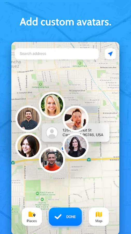 You must share your location with your friends, but the phone is almost dead, can't locate you or the GPS accuracy is bad? No problem, just make a quick search of your desired place, adjust it on the map and it’s done. You’ll have a image of the map with a pinpoint, ready to share with the ones who asked for your current place.