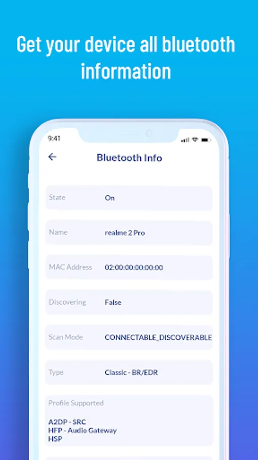 - Display details about device Bluetooth .(Bluetooth state, name, mac, discover mode, etc..)[New....]