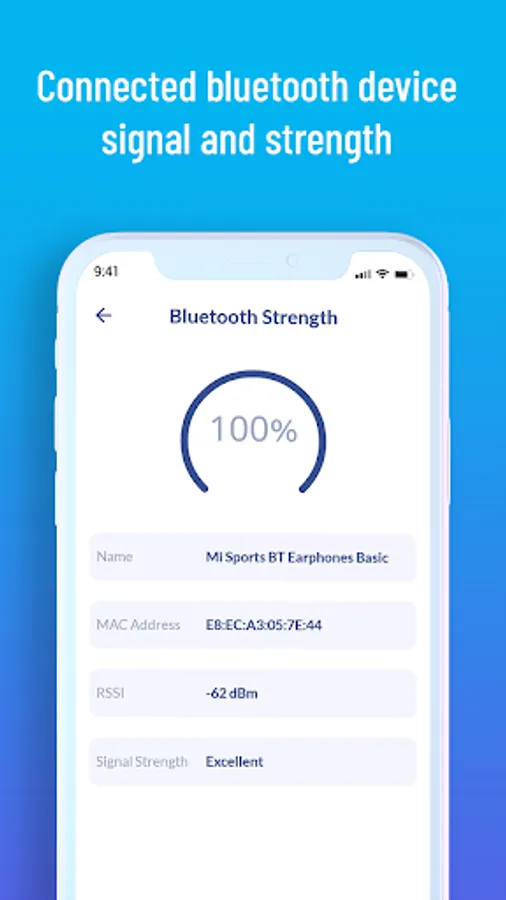 - Check connected Bluetooth device strength, (Excellent, Very Good, Good) and its details. (Name, mac, strength, RSSI )[New....]