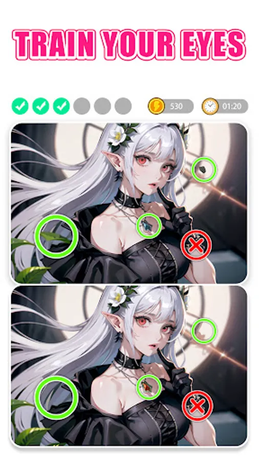 🔍Zoom in and out to help you see,Easily enlarge images to spot tiny differences.