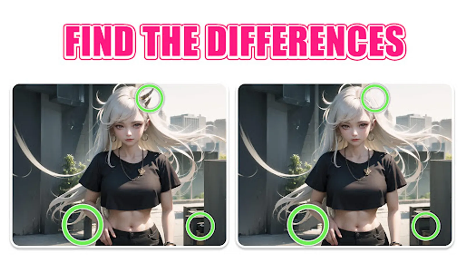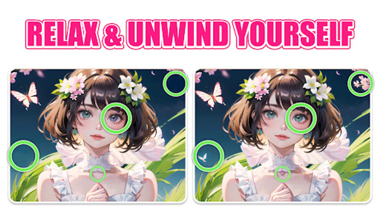 Find the Difference is a classic and relaxing puzzle game that's enjoyed by people all over the world. It's a puzzle-type game where players must find a set number of differences between two nearly identical images, whether they're illustrations or photographs that have been altered. This type of game is also known as a photo hunt game and was once only found in activity books or newspapers. But now, our game app lets you easily play tons of Find the Difference games on any mobile device, anywhere and anytime!