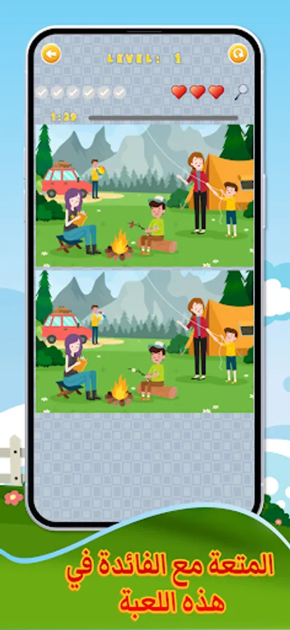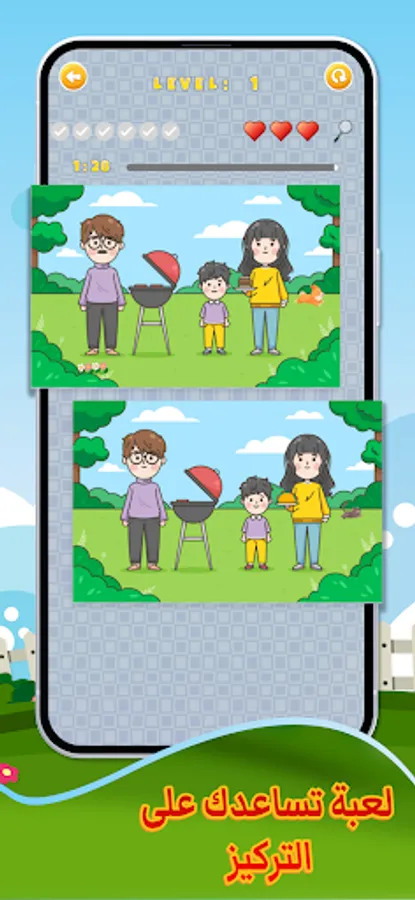 The game of finding the six differences between the two pictures, find the differences between the two pictures, a game to stimulate the mind and focus, consisting of thirty stages that are getting more difficult, and you have to find the differences in the specified time at the top of the game. A free game presented to you via a mobile game application, a free game The Five or Six Differences