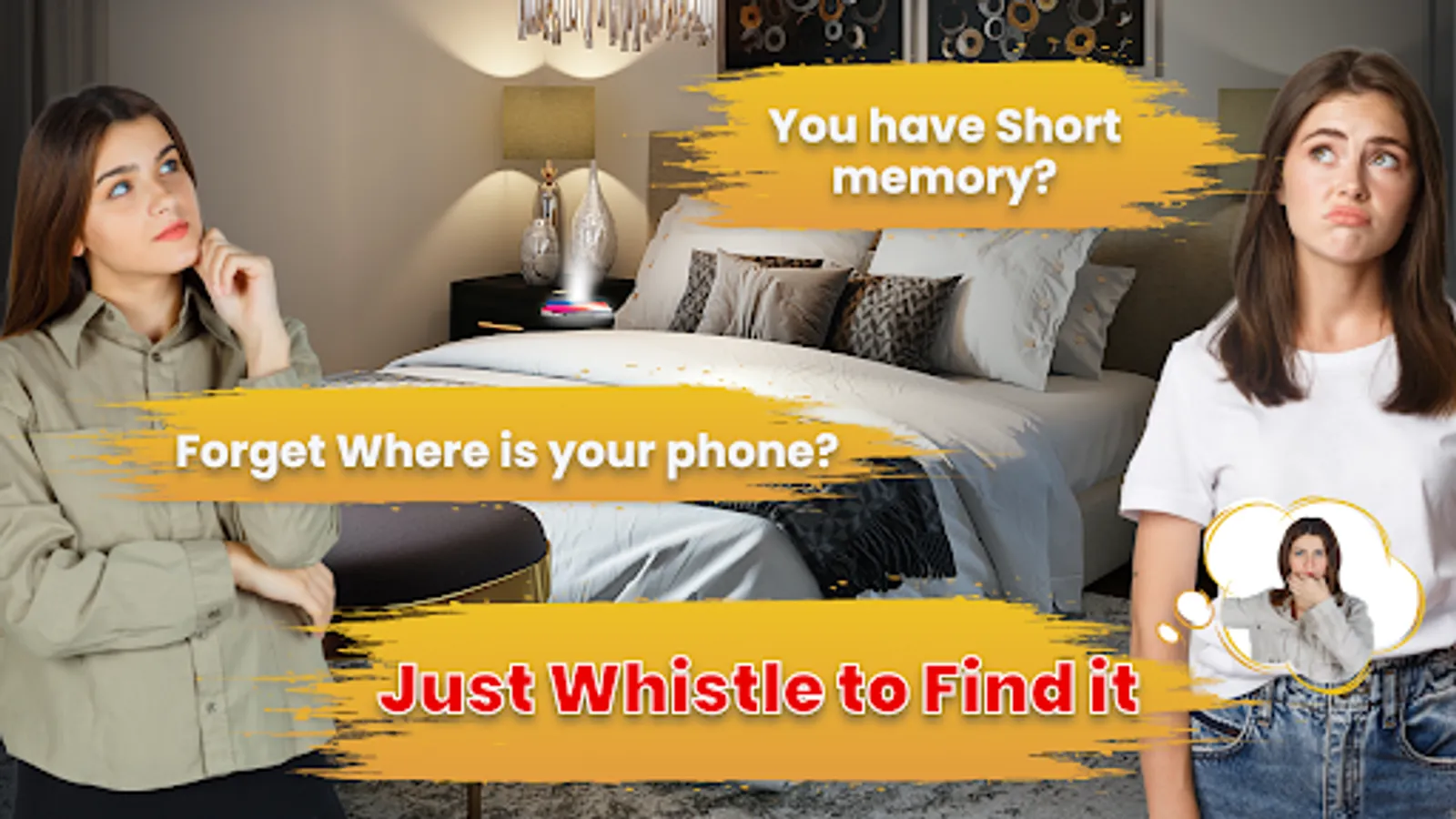 Attention: Finding the Phone sometimes can be difficult due to high noise or loud sounds around your phone, it can make it difficult to detect the whistle sound. Wait for the noise to get a bit low before the whistle.
