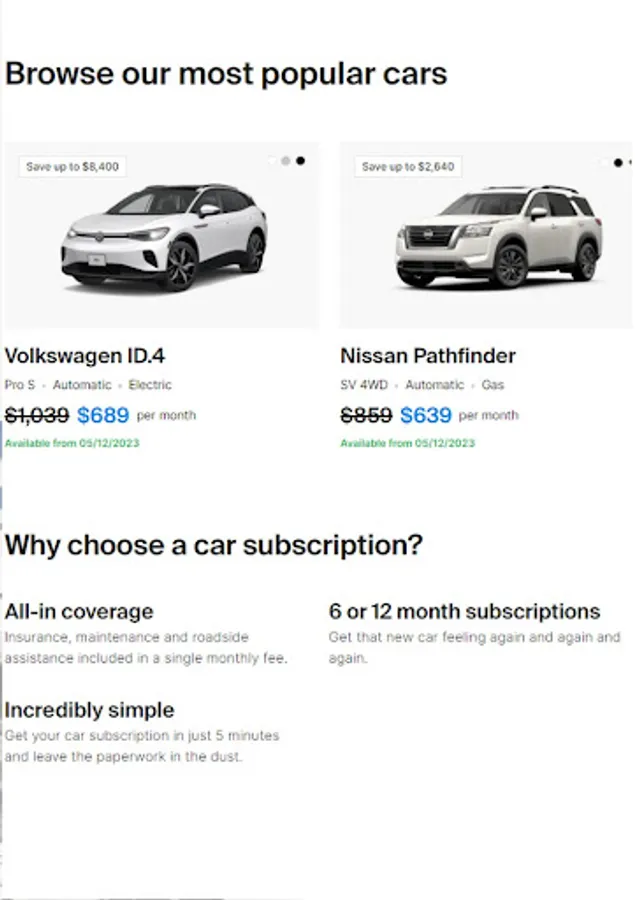 With the FINN car subscription you can order your dream car today. Choose from many models from the most well-known car brands, including Audi, BMW, Tesla and Volkswagen, and choose a predefined term of 3, 6, 12 or 13 months. FINN does the rest for you! Best of all, all insurance, maintenance and depreciation costs are already included in the monthly subscription price. This means that a FINN subscription is sometimes much more attractive than classic leasing or long-term car rental. And it's even easier, because in an emergency our employees are there for you around the clock.