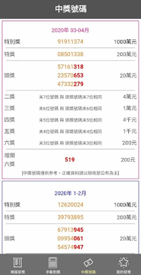 The winning number is also provided, which can display the current and previous invoice numbers-