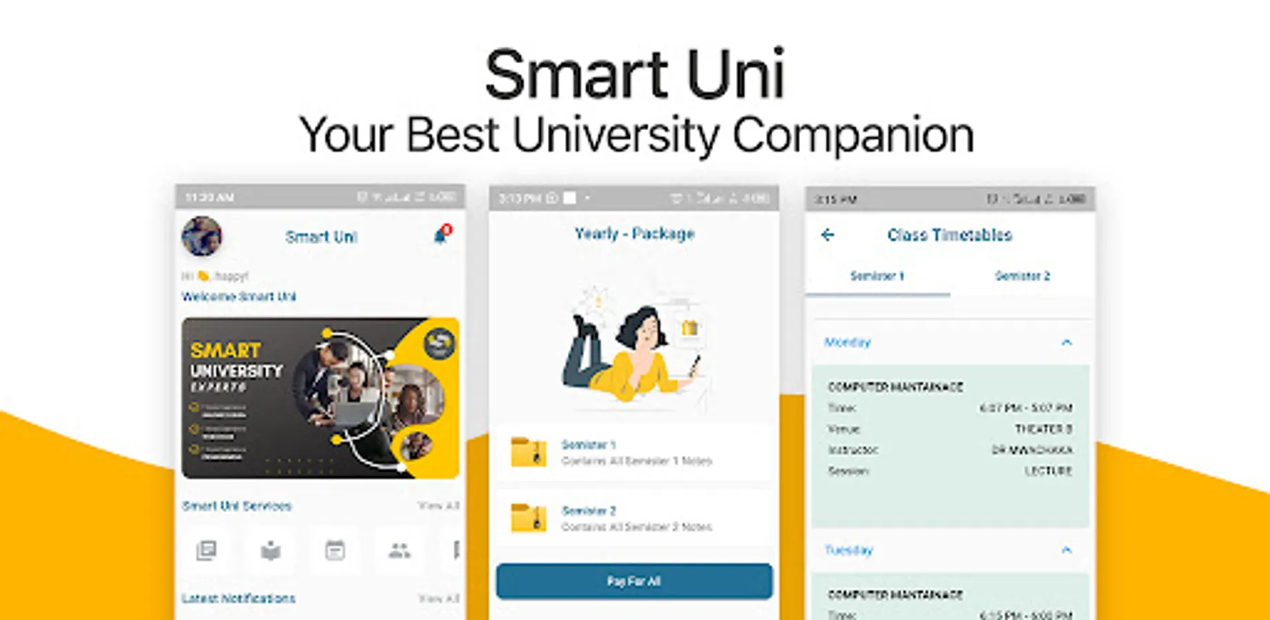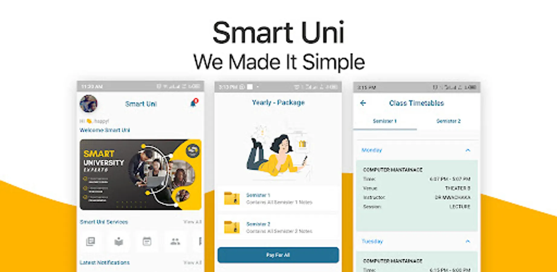 Smart Uni connects university students together, to enhance easy schooling life for Students . In Smart Uni students can access various services that facilitate their schooling life