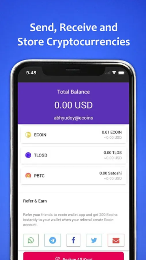 Crypto Wallet is a secure vault for your digital money. Your coins will be kept safe in the Blockchain itself. Store your private key to create your own bank level security, never share it with anyone.