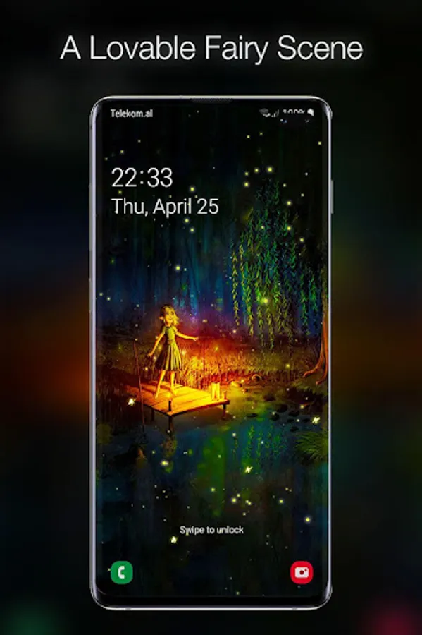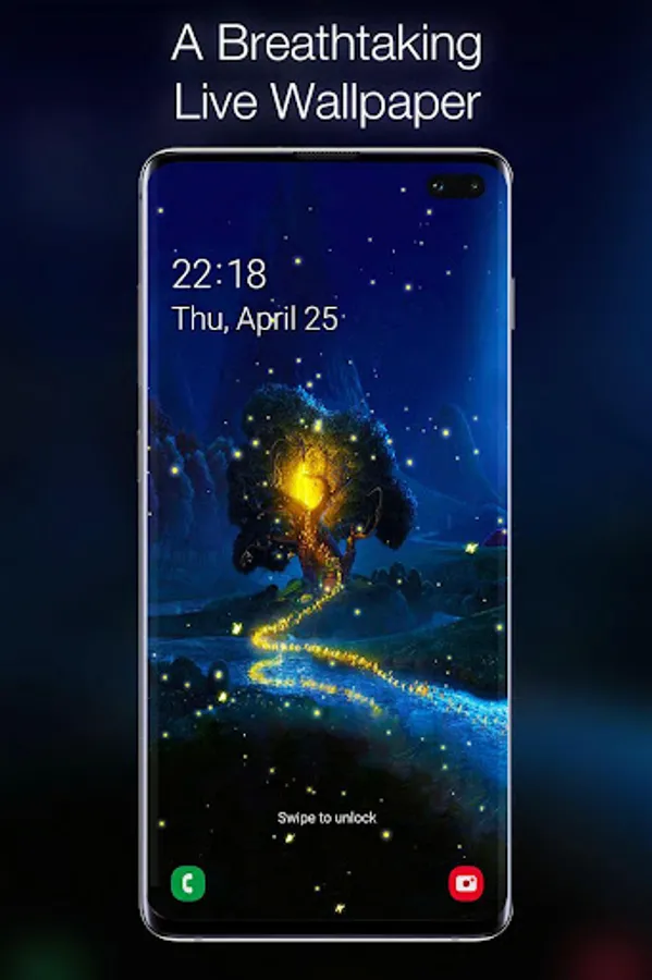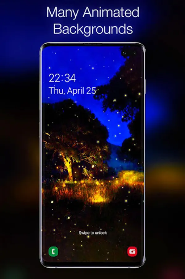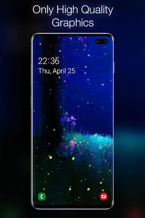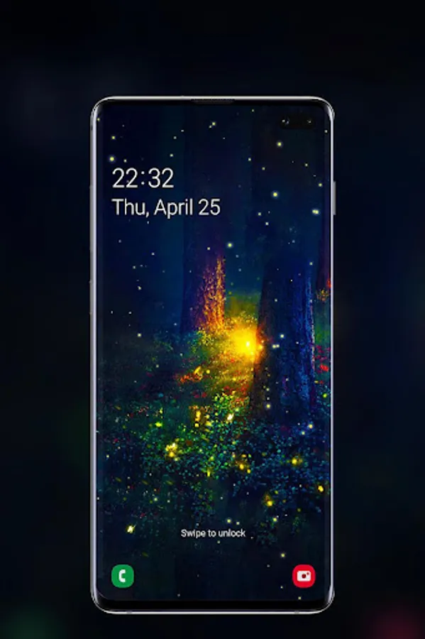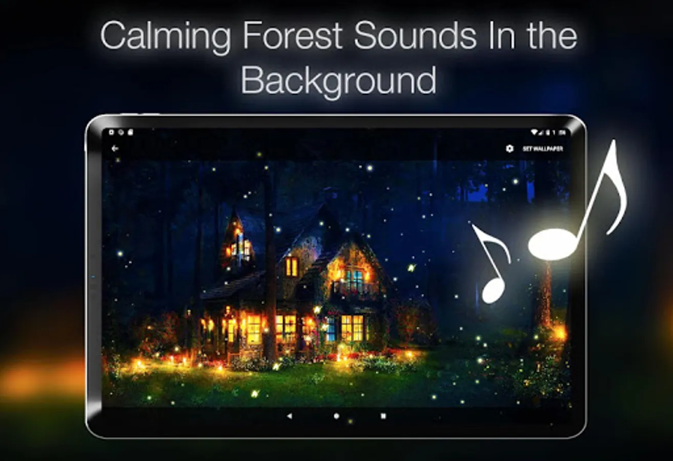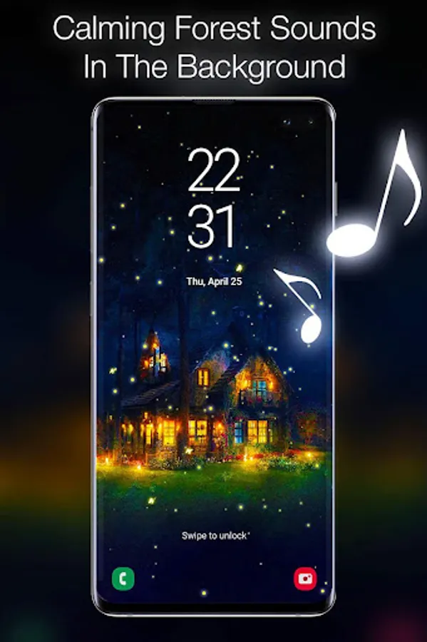 The animated background of fireflies represents the only way to capture the magic of the fireflies show on a warm summer night. You phone will turn into a firefly jar and you will never get enough of that beauty. These little light bulbs are beetles or lighting bugs and they can offer you the most hypnotizing nature spectacle through their bioluminescence during summer twilight. Beautify your screen with their flashing lights on an enchanted forests background! Combined with the Celtic forest sound this live wallpaper will be the most enjoying and calming experience to relax your mind and soul.