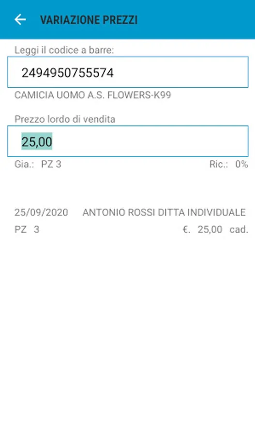 With simple and quick steps it is possible to vary the prices of the items, create a document (e.g. customer order), adjust the inventory, print the labels and much more ...