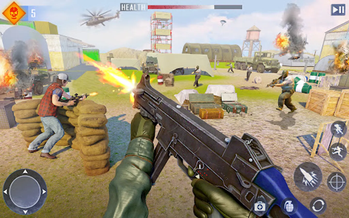 Introducing FPS Commando Gun Games Mission an offline FPS game. As a highly skilled army commando, you'll face off against terrorists in this thrilling free shooting games offline during a secret mission. With addictive gameplay and a wide range of modern weapons, 3D game guarantees excitement during your free time. Equip yourself with shotguns, knives, grenades, pistols, and assault rifles as you embark on real commando secret missions to eliminate the enemy. Take charge, join the front line, and complete challenging shooting missions in an offline shooting game 3d. This game fall in the category of fps commando shooting games and action games 3d.