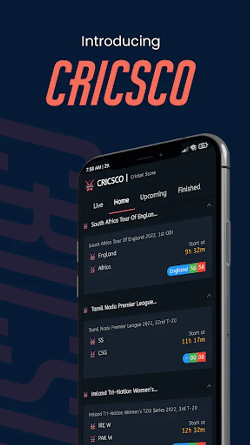 CricSco is the perfect cricket live scores app for cricket lovers! Get live cricket match scores, updates and match analysis of all cricket matches, no matter which corner of the world you are in. Be the first to know the latest scores, team lineups and recent cricket match results. All cricket updates at your fingertips with the cricket live line guru!