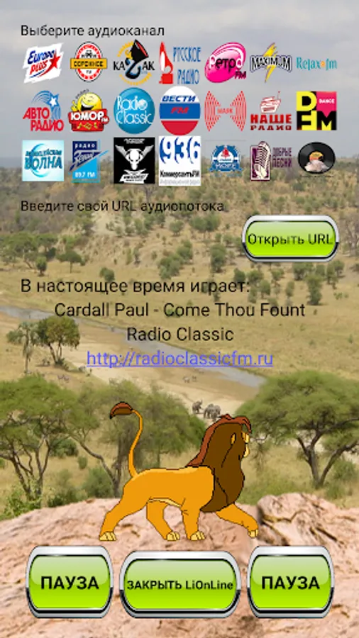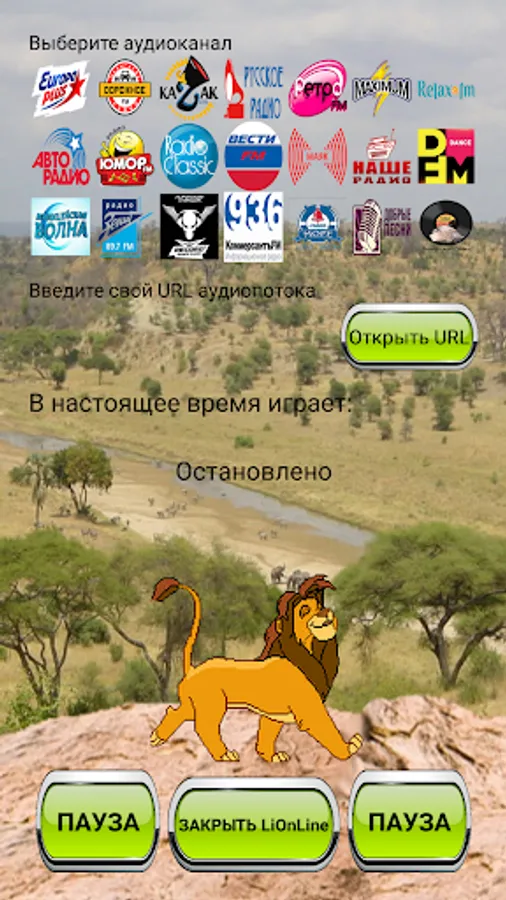 Также имеется возможность экстренного завершения приложения путём нажатия кнопки "ЗАКРЫТЬ LiOnLine", находящейся внизу экрана приложения, посередине между кнопками "ИГРАТЬ/ПАУЗА".