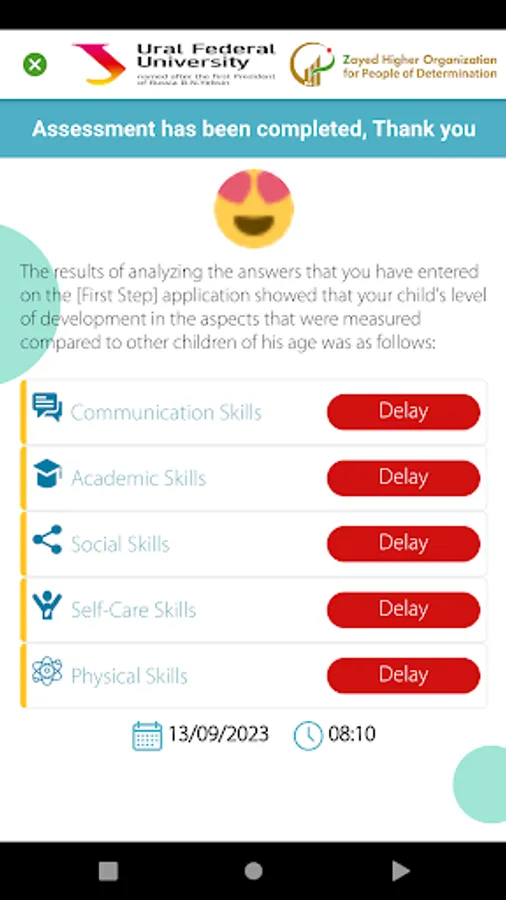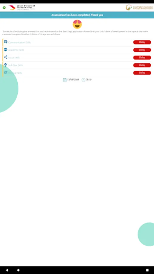 An electronic developmental scale focuses on identifying the aspect that represents apparent delay in the condition, specifying it by measuring against the natural development of children from the age of 1 to 18, encompassing psychological, cognitive, motor, and functional development, followed by speech and language development in the condition, as well as any developmental or sensory disorders (motor, visual, auditory). This is achieved through the response of the parent or caregiver to diverse questions on the application, according to the chronological age of the individual, enabling us to determine the extent of development in the aforementioned aspects or the degree of delay compared to the normal growth and acquisition rate. The application provides an indicator of a delay in one or more of these aspects.