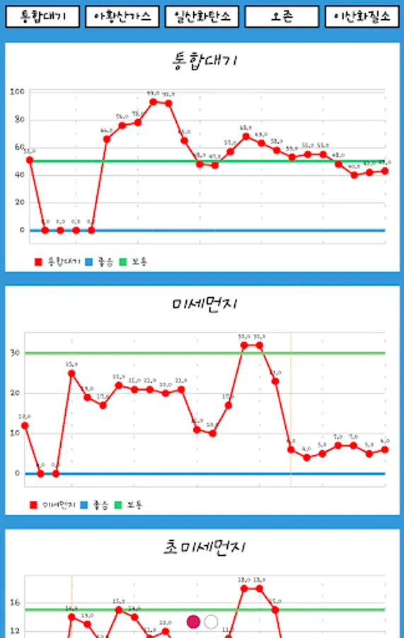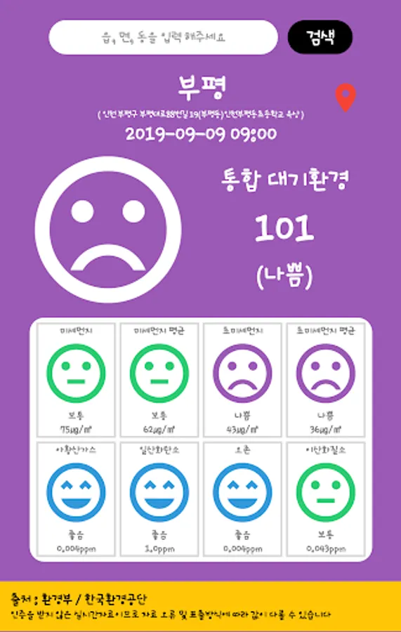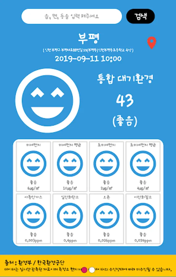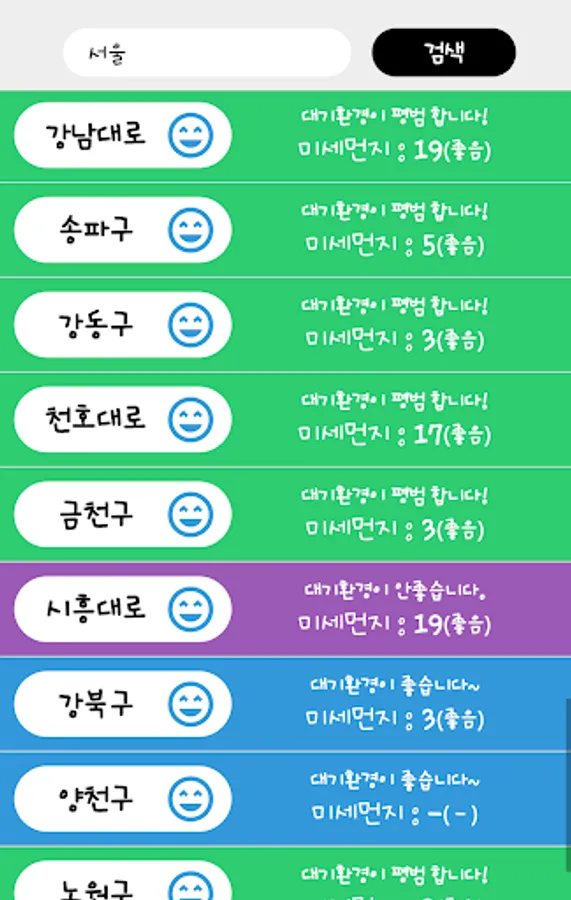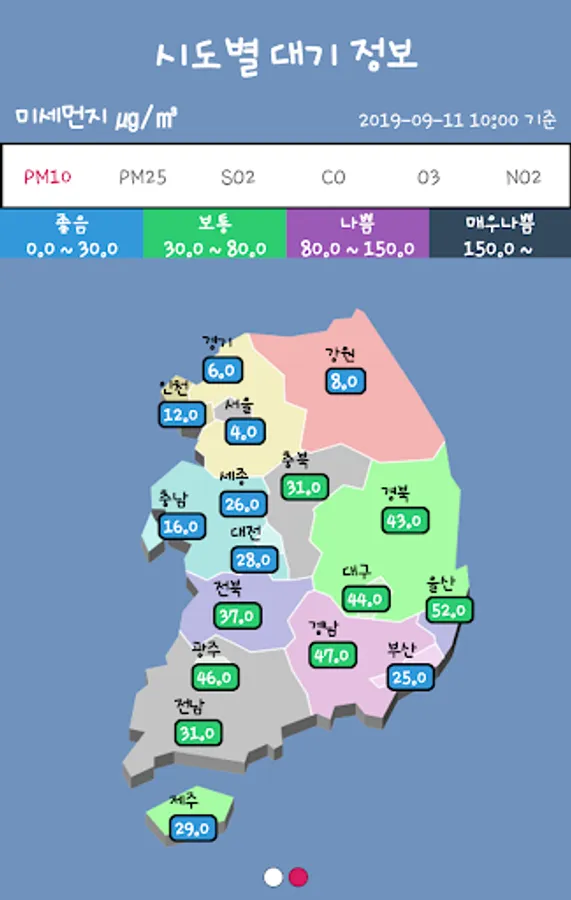 Easy to see fine dust application using the Korea Environment Corporation data.
