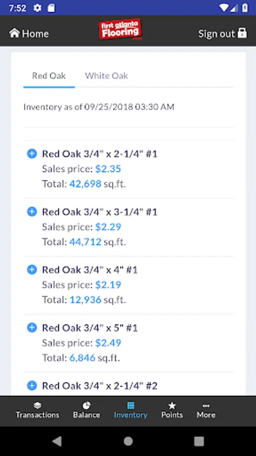 View in-store inventory on Red Oak and White Oak hardwood. Check up-to-date prices on all the grades and sizes available so you can quote your jobs correctly. See which First Atlanta Flooring location has the quantity you need on the items you need so you can plan accordingly.