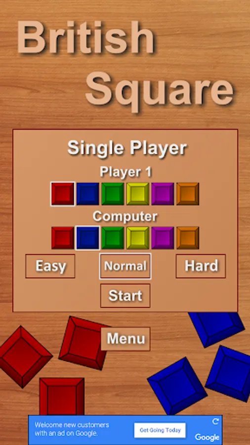 British Square is a simple and fun strategy game. Players take alternating turns placing tiles on the board to block off as much area as they can for their color. The player with the most tiles wins the round and is awarded points. The first to 7 points wins the game!