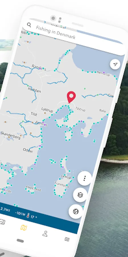 On the map you will find all the good Danish fishing spots, exciting layers with water care, associations, parking and much more. Tap the weather icons and get the weather forecast, water level or historical weather information for your physical or selected location.