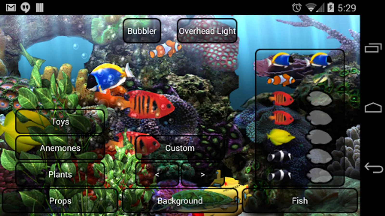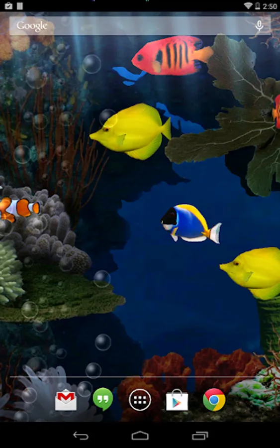 A 3D rendered live wallpaper background of a tropical fish tank, with beautiful backgrounds and smooth motion. Double-tap to feed them! Triggerfish, clownfish, turtles, seahorses, jellyfish, lionfish, and more! Works as a daydream on 4.2+ devices!