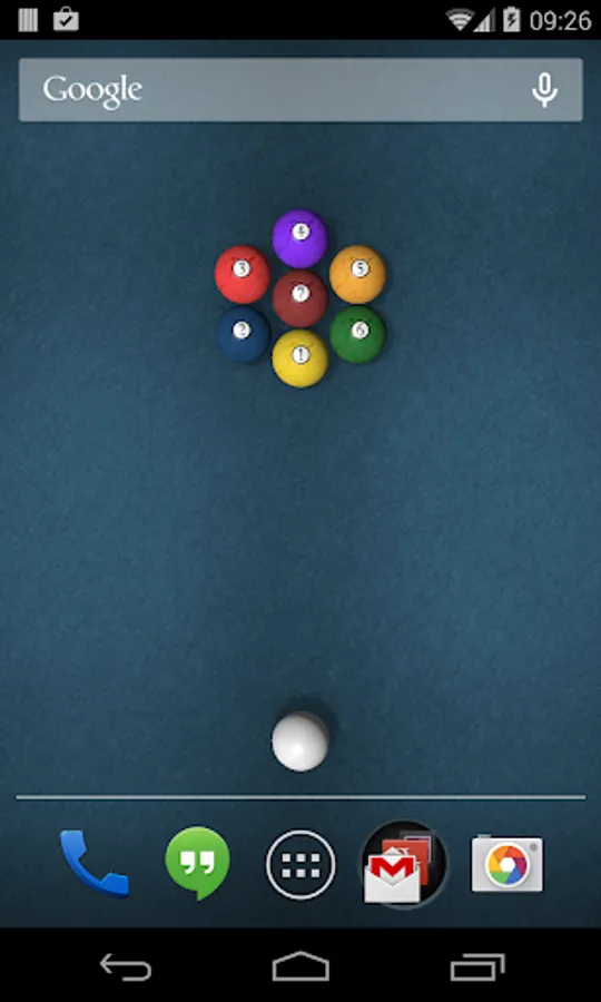 Host a fully interactive pool table right on your home screen! Beautifully OpenGL rendered billiard balls roll and interact realistically, with high quality highlights and shadows. Full support for portrait and landscape, on both phones and tablets. This free version simulates a game of 6-Ball, with additional game types available in the full version. Swipe the cue ball to interact with the table!