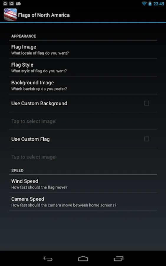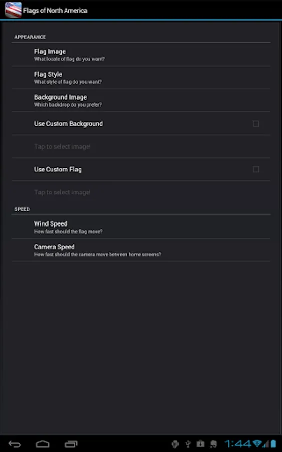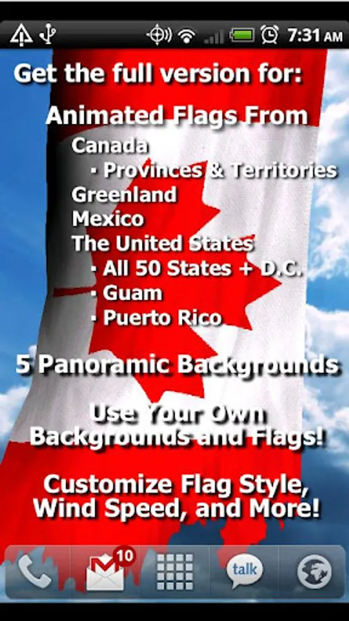 If you enjoy this, please support us by getting the full version! It contains North American flags from USA, Canada, Mexico, Greenland, 50 US states, DC, Guam, and Puerto Rico! Or create your own flag, if you want! Multiple flag styles, backgrounds, custom backgrounds, and lots more settings!